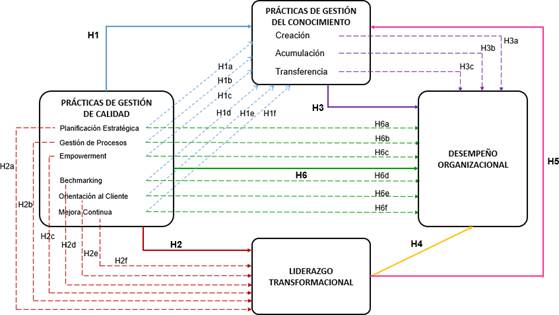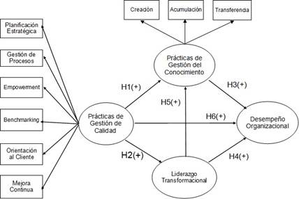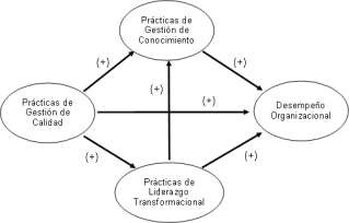 Después de haber analizado cómo las prácticas de gestión de la calidad repercuten en las prácticas de gestión del conocimiento y el liderazgo transformacional, se puede afirmar también que la misma no sólo tiene efecto de manera directa en el desempeño organizacional, sino que, además, puede contribuir a la mejora de las prácticas de gestión del conocimiento y liderazgo transformacional. Se ha contrastado también cómo la intervención de estas variables ejerce un efecto mediador en la relación entre la gestión de la calidad y el desempeño organizacional.